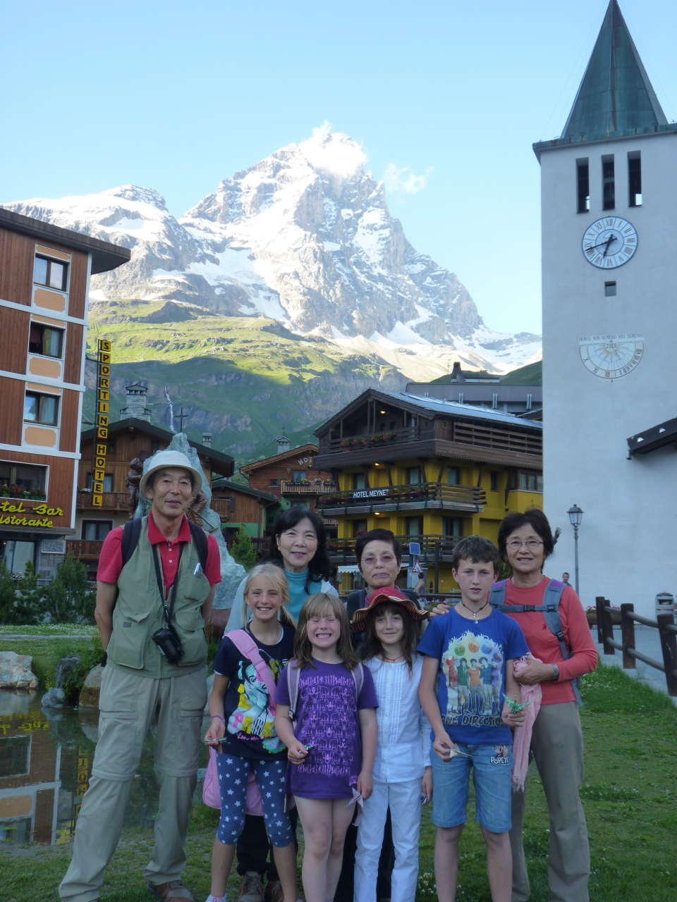 アオスタからはシャンティオンを経由して1時間30分くらいでチエルヴィニアに着く。終点は広い駐車場の先にある教会前の広場がバスの終点。2000メートルあり夏は放牧地になり、冬はスキー客で賑わい、観光関連の建物以外は少ない。ここからは、イタリア側からの登山基地としても知られている。