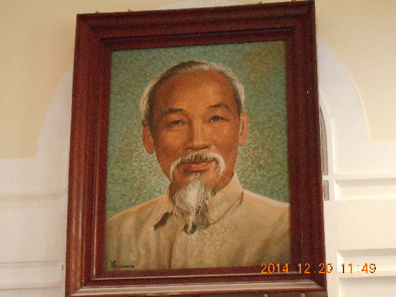 ホール壁にはホーチミンの優しい顔の肖像画がありました。