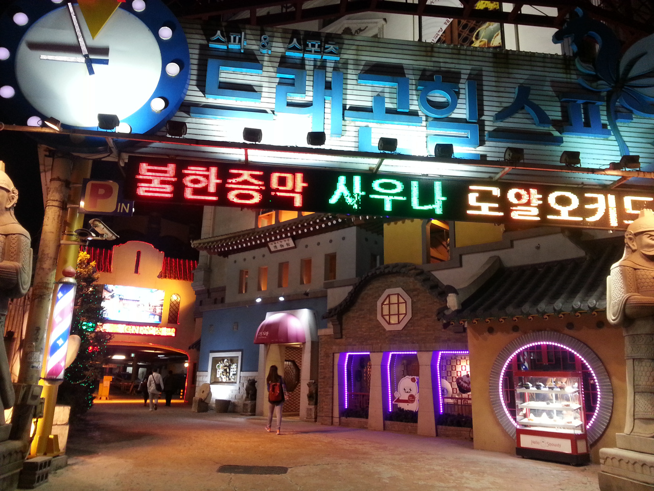 チムジルパン(岩盤浴のようなもの)やサウナ、お風呂のほかにレストランやゲームコーナー、マッサージコーナー等があり、スーパー銭湯のような施設です。1号線竜山駅おりてすぐ、右隣にあり、確か800KRW位だったと思います。24時間以内なら宿泊も可能です。
