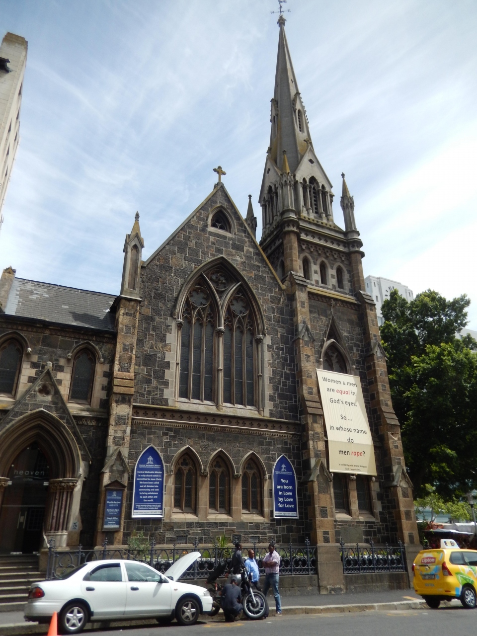 ケープタウン市街地の中央附近のショッピングセンターやカフェ・レストランが多くあるエリアにあります、そばに市民憩いの場であるカンパニー・ガーデンズがあります、古い聖堂で外から眺めました、周辺での散策時に目立ちますので見ることが出来ます。