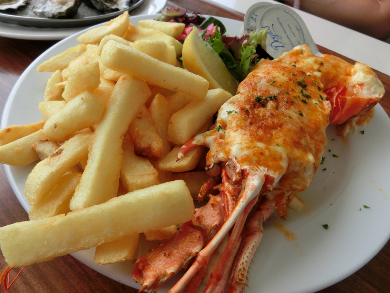 入ってすぐの左側のお店で買って食べたかったのですが、まったくもってすごい人で断念しました。。その代わり、入ってすぐの右側のレストランっぽいお店のテラス席でビールを飲みながらのんびりと、食べることができました。が、やはり、以前食べたこともある、左側のお店が美味しいと思います。今回は座って食べることを重視したので、次回があれば、リベンジしたいと思います。