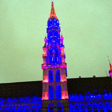 市庁舎やギルドハウス、王の家、ブラバン公の館といった美しい歴史的建物に囲まれた広場で、ヨーロッ屈指の美しさ故に世界遺産にも登録されています。ヴィクトール・ユーゴーはこの広場のことを「世界で最も美しい広場」と言い、ジャン・コクトーは「豊饒なる劇場」と形容しました。11世紀から12世紀は市が開かれた場所で、やがて市の経済、政治の中心地となり、15世紀に市庁舎が建てられると、周辺に同業者組合ギルドが次々と建てられるようになりました。これらの建物は当時は木造建築でしたが、1695年、フランスの砲撃で、市庁舎以外、殆どが破壊されてしまいました。砲弾による火災は2日間も続いたそうです。その後、驚くべき早さで再建が進み、現在の石造りの建物として生まれ変わり、現在に至っています。夜には幻想的な音と光のショーも行われています。平日は日没より毎00分、日曜日は毎00分、30分に開催。照明演出のため、暗いのと、人がいっぱいなので、スリに注意が必要です。