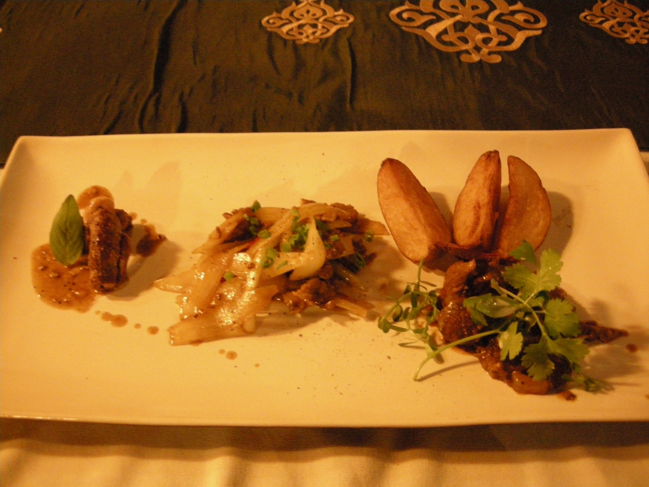 団体ツアーで連れて行かれたので予算はよくわかりません。店の雰囲気は暗めの照明や壁に飾られたきれいな器など、全体的にオシャレな感じです。その分料金は割高かもしれません。料理はどれも美味しかったです。大きな器にちょっとずついろいろな料理がのって来るので、大食いの私には物足りない印象でしたが、デザートまで全て食べたときには満腹になっていました。夜のホイアンの町を眺めながらオシャレなディナーを楽しむのも良いものでした。