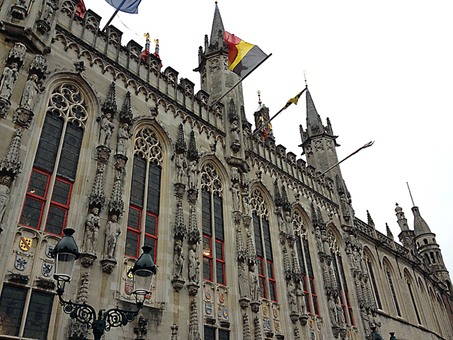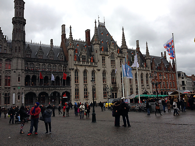 15世紀に建造された、かつてのギルドハウスや、鐘楼など重厚な建物に囲まれた旧市街の中心的存在の広場です。この周辺の旧市街一帯が世界遺産に登録されています。ギルドハウスは今はレストランやカフェ、土産物屋、銀行として営業しています。広場中央には14世紀にフランスの圧制に抵抗した市民の英雄の銅像があります。広場にはツーリストインフォメーションもあります。