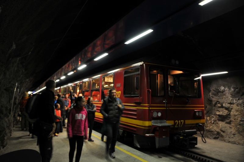 クライネシャイデックからユングフラウヨッホに登る鉄道です。ほとんどトンネルで、途中駅の展望台からわずかに景色が見られる程度です。山頂のユングフラウヨッホで景色が見えなければ意味が無いので、天気を確認してから乗りましょう。