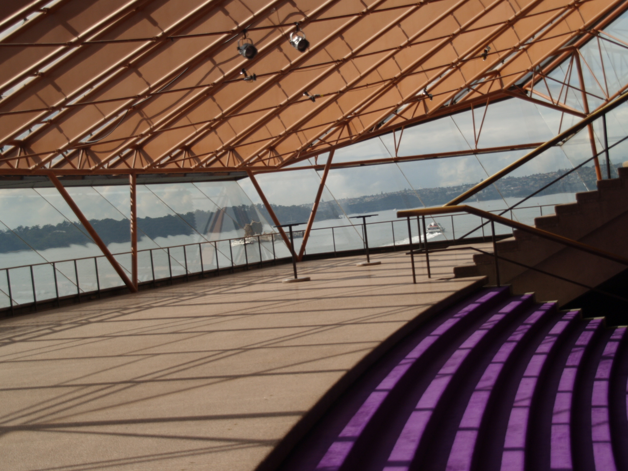 ここの見学は、ガイドツアーである。簡単な概略のビデオと諸注意を聞いて、そろってガイドさんについて回ります。写真の撮れる範囲は限られていて、大ホールは写真が不可。ホール前のホワイエから見た戸外の風景は絶品である。記念撮影はここに限る。大半の人は利用しないが、此処のトイレは、デザインが素晴らしい。ここの写真はOKですので、デザイン関係の人は見学利用を勧める。
