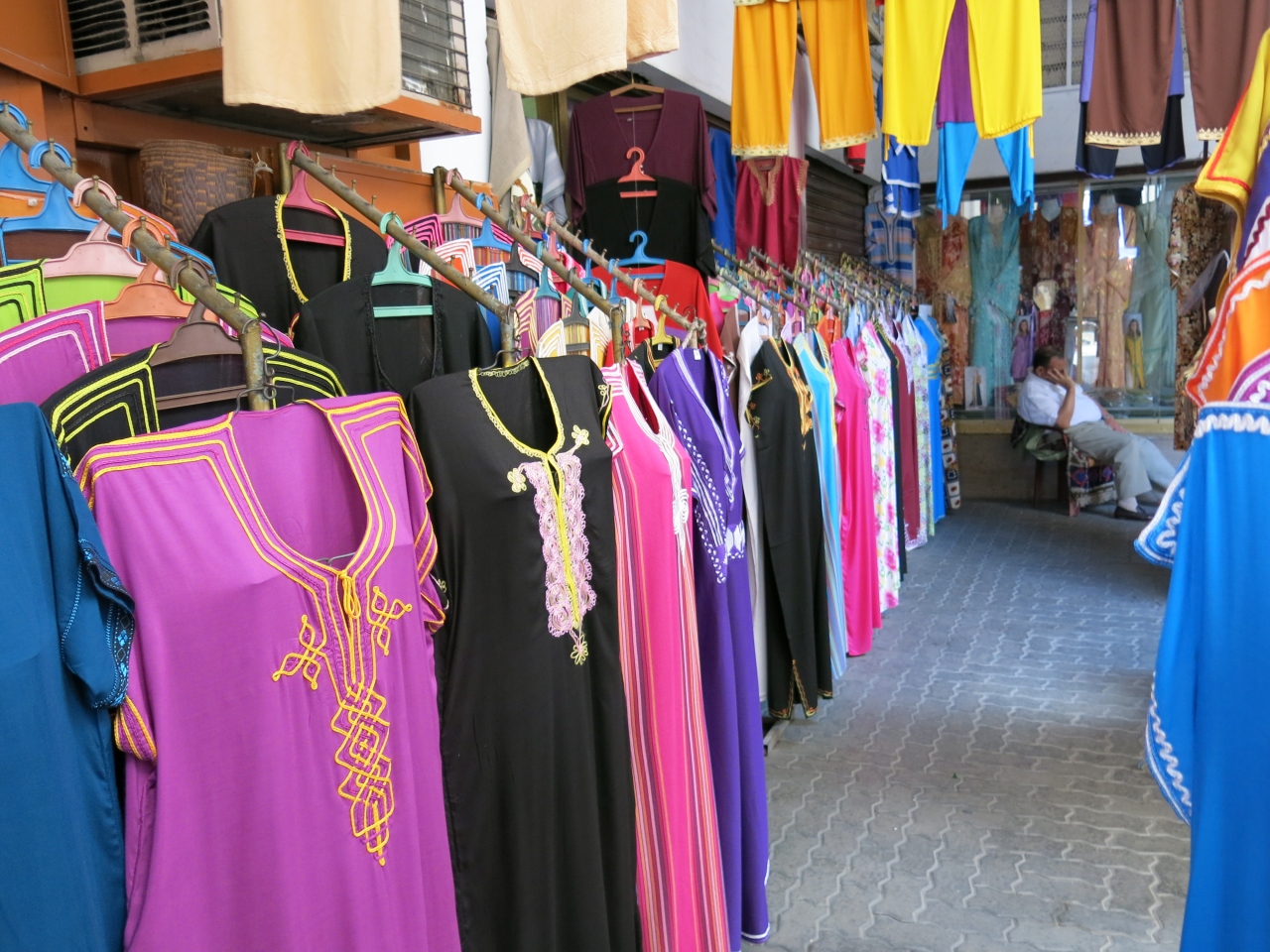 カサブランカらしいところ、ということで、地元の方に連れて行ってもらいました。 色とりどりの服がかけられていたり、日本でも一部で流行っているつっかけが売られていたり、地元料理用のタジン鍋が売られていたり、見ているだけで楽しかったです。 結局、何も買いませんでしたが。
