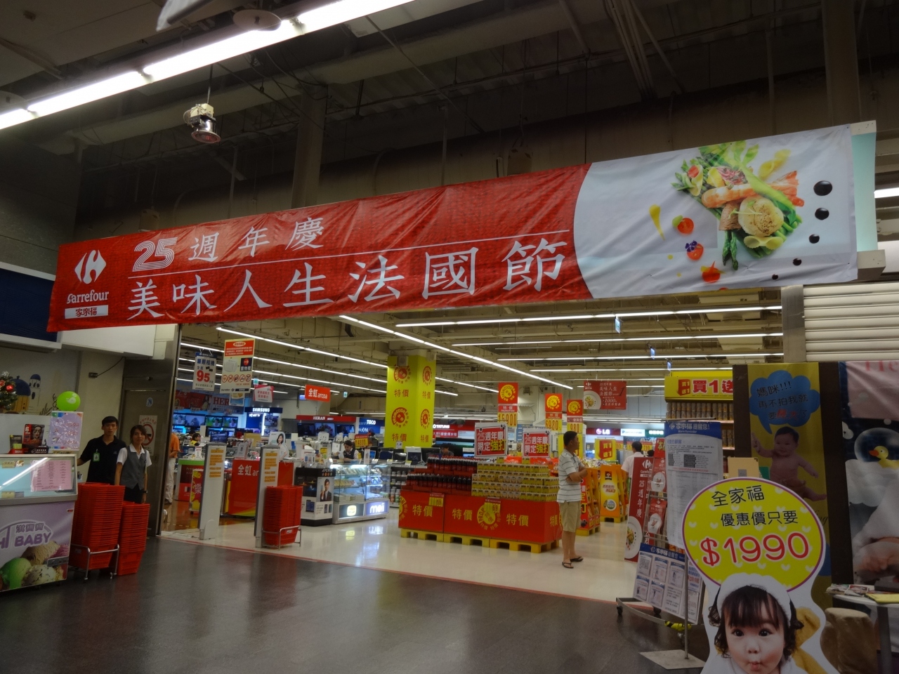 台中駅の裏口にあるショッピングモールです。近くのホテルに宿泊したので、何度か使いました。地下にはフランス系のスーパー「カルフール」が入っており、24時間営業なので便利です。食料品はばらまき用のお土産に適したものもあります。