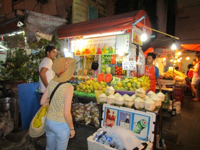 2012年の夏よりはココナツスムージーは5バーツ値上がりしていましたが、それでも安くておいしいです。マンゴは30バーツだったと思います。