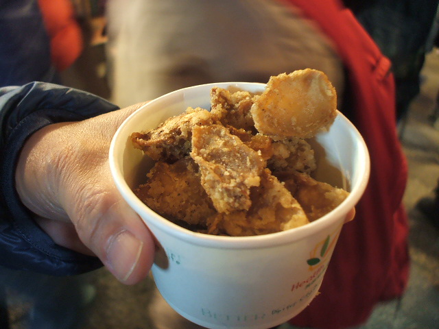 10年前の台湾訪問時にも行きましたが、パッケージツアーだったため観光バスで連れられて楽に行くことができました。今回は個人旅行のため路線バスに挑戦し、ホテルでバス乗り場を教えてもらい乗り換えなく1本で行けたのですが、降りるバス停を間違えて終点まで行ってしまいました(九分の1つ先)。ところが、そこは金瓜石というところで日本統治時代の金鉱跡地が現在は黄金博物館として町全体が残されているところでした。せっかくなので観光することにしたのですが、そこには当時の日本家屋や、当時皇太子だった昭和天皇が訪問の際に建てられた「太子賓館」もきれいに残されていて感動しました。肝心の九分は以前と比べ観光客が非常に増えており、歩くことさえ難しいような混みようでした。前回のツアーと違って時間に余裕があったためのんびりと見学もでき、途中で立ち食いしたエリンギのから揚げや球形のエビ野菜コロッケがとてもおいしかったことが忘れられません。
