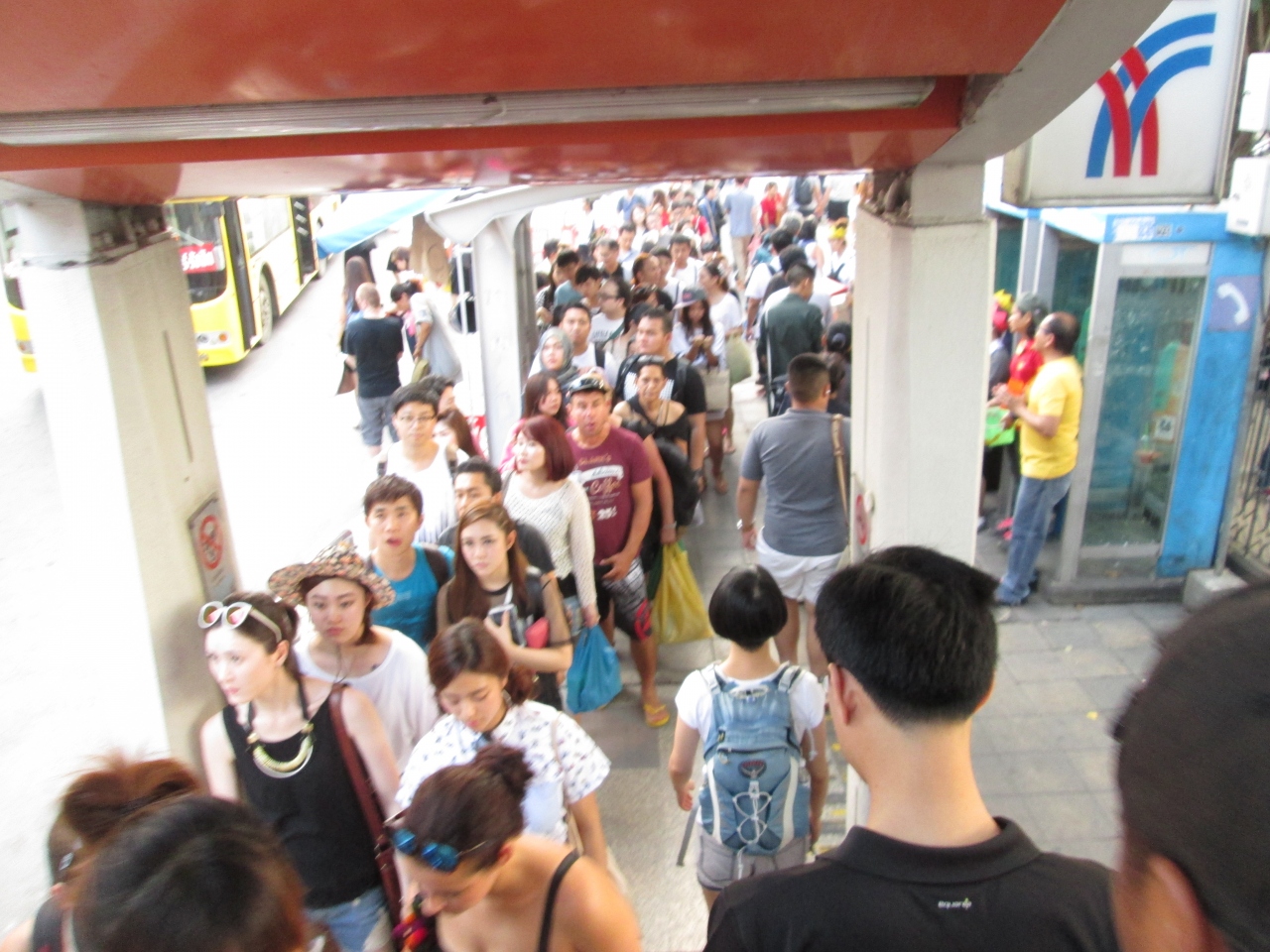 ウィークエンドマーケットの最寄り出口はチャトゥチャック公園の出入り口になりますが、こちらの歩道橋はマーケット開催中は写真のように大混雑します。反対側の出口は比較的空いていますので回り道ですが結果的に速く移動できます。