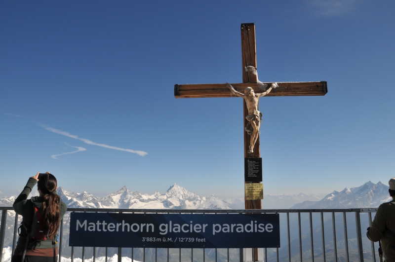 マッターホルンはふもとから山頂までロープウェーを乗り継いで1時間。絶景を拝めます。山の天気は変わりやすいですから、ホテルなどでみられる山頂のWebカメラをチェックして、天気がいいうちに登ってしまいましょう。私が行ったときは午前中快晴だったのに午後は雲が出てしまい、まったく景色が見えなくなってしまいました。