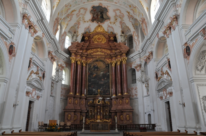 フランシスコ教会と異なり、バロック様式のかなり凝った内装です。ピンクを基調としており、華やいだ雰囲気でした。観光ルートに入っているらしく、中国人の団体が来ていました。天井のフレスコ画やシャンデリアなど見どころ多数。