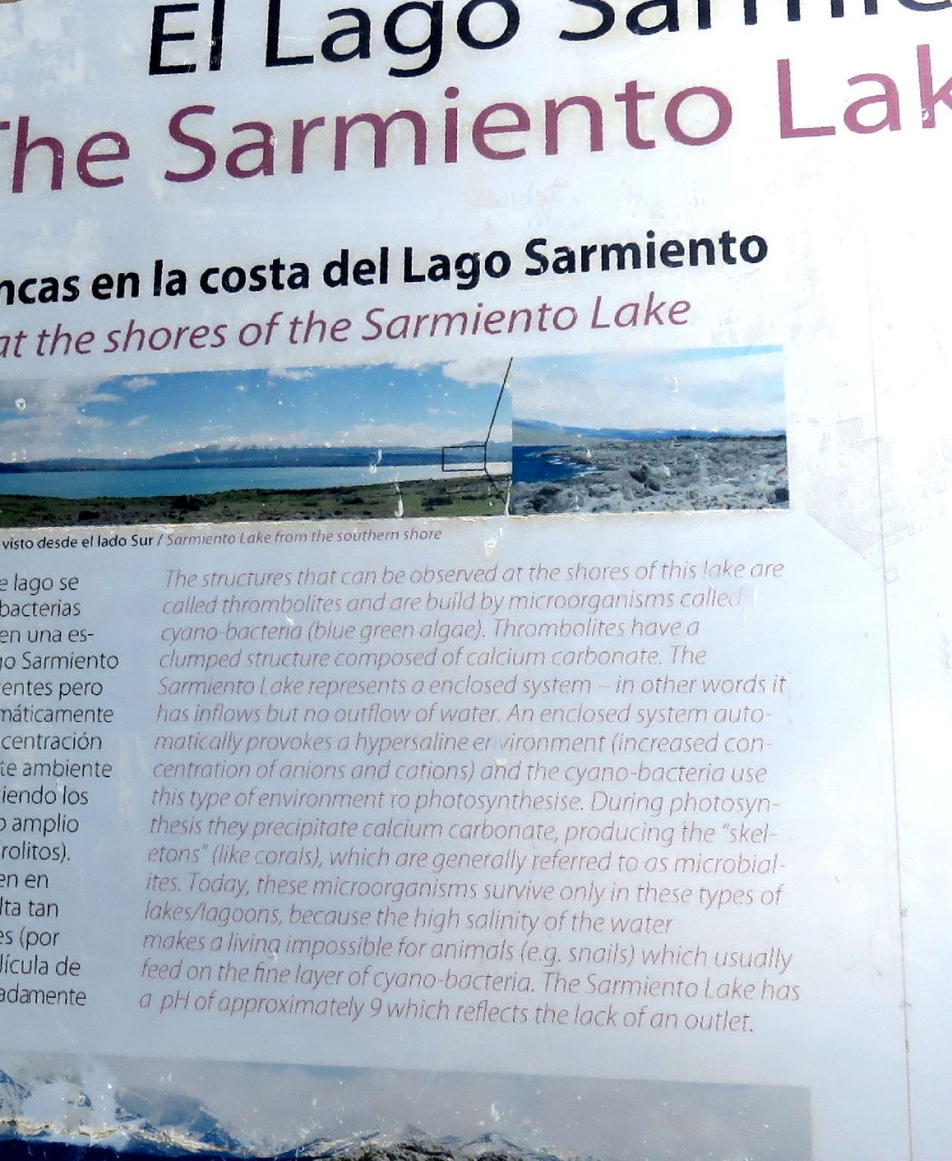 プエルトナタレスから9号線経由でパイネに向かい、9号線から分かれてアマルガの公園管理事務所へ向かう途中、最初に左手に見える湖。全長23km、幅6km、面積90平方キロメートルの大きな湖で、出口のない閉鎖水域のため、微生物の光合成によって生成された炭酸カルシウムが堆積し、水際が白くなっているのが特徴だ。この湖越しにパイネの塔を見ることができるので、多くの観光バスがここに止まり、その景観を楽しんでいた。2008年に最初にパイネを訪れた時は、トーロ湖沿いの新道を通ったため、2014年の二度目の訪問で初めてこの湖の景観を見ることになり、湖の色とパイネの塔の眺望に感激したところだった。