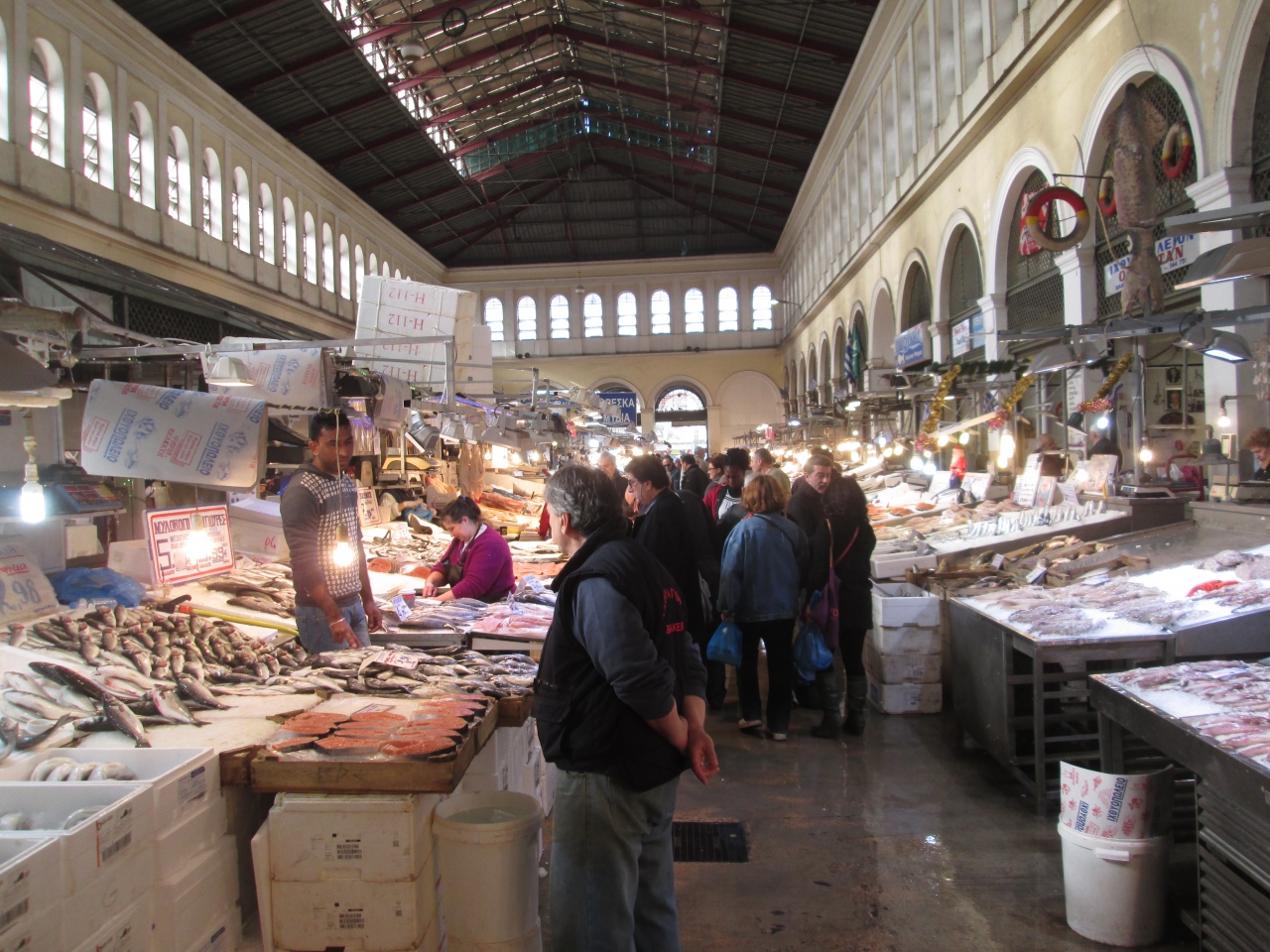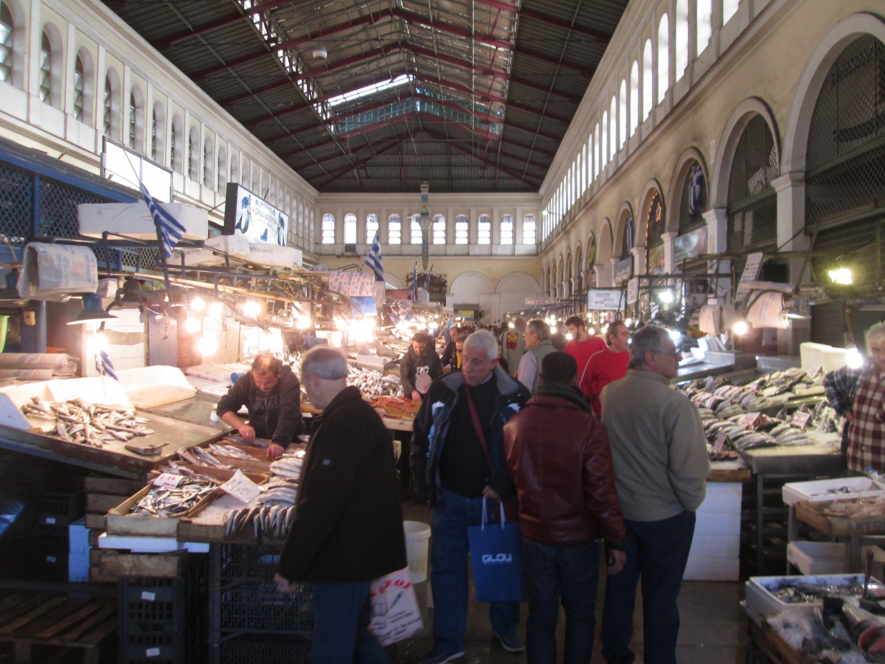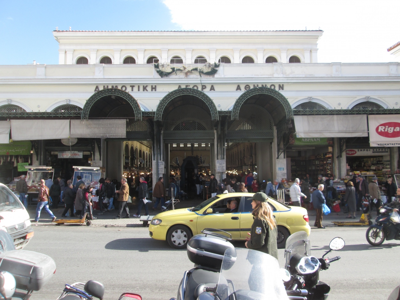 地下鉄モナスティラキ駅から北に延びているメイン通り、アティナス通りに面しています。市場内は非常に活気があり魚売り場は新鮮な魚が並んでおり、アテネの市場や物価事情が分かります。一般の人や観光客でも自由に見学することができました。