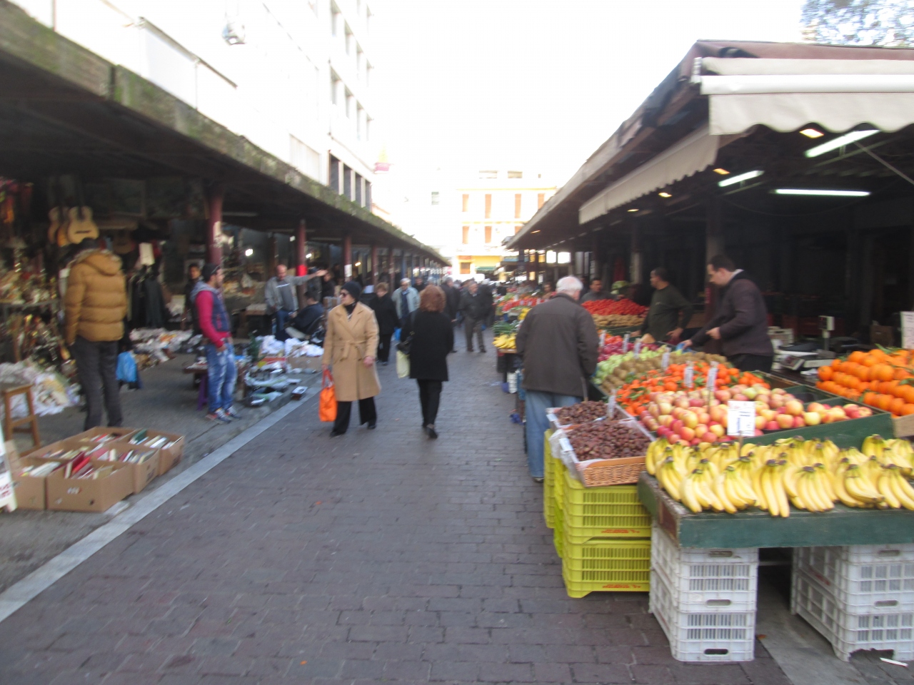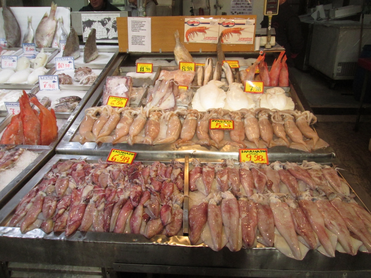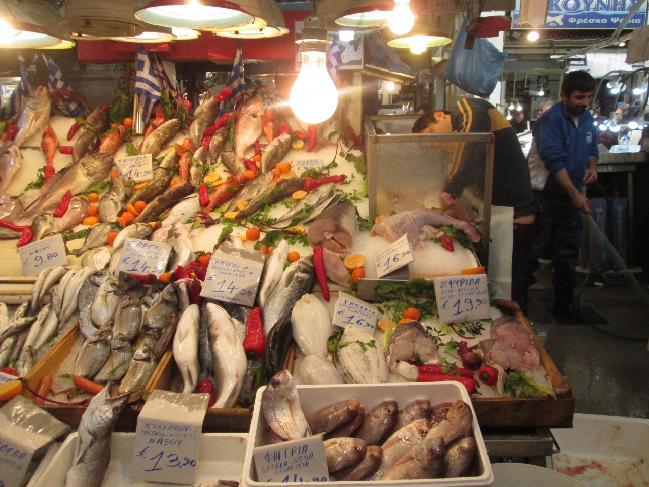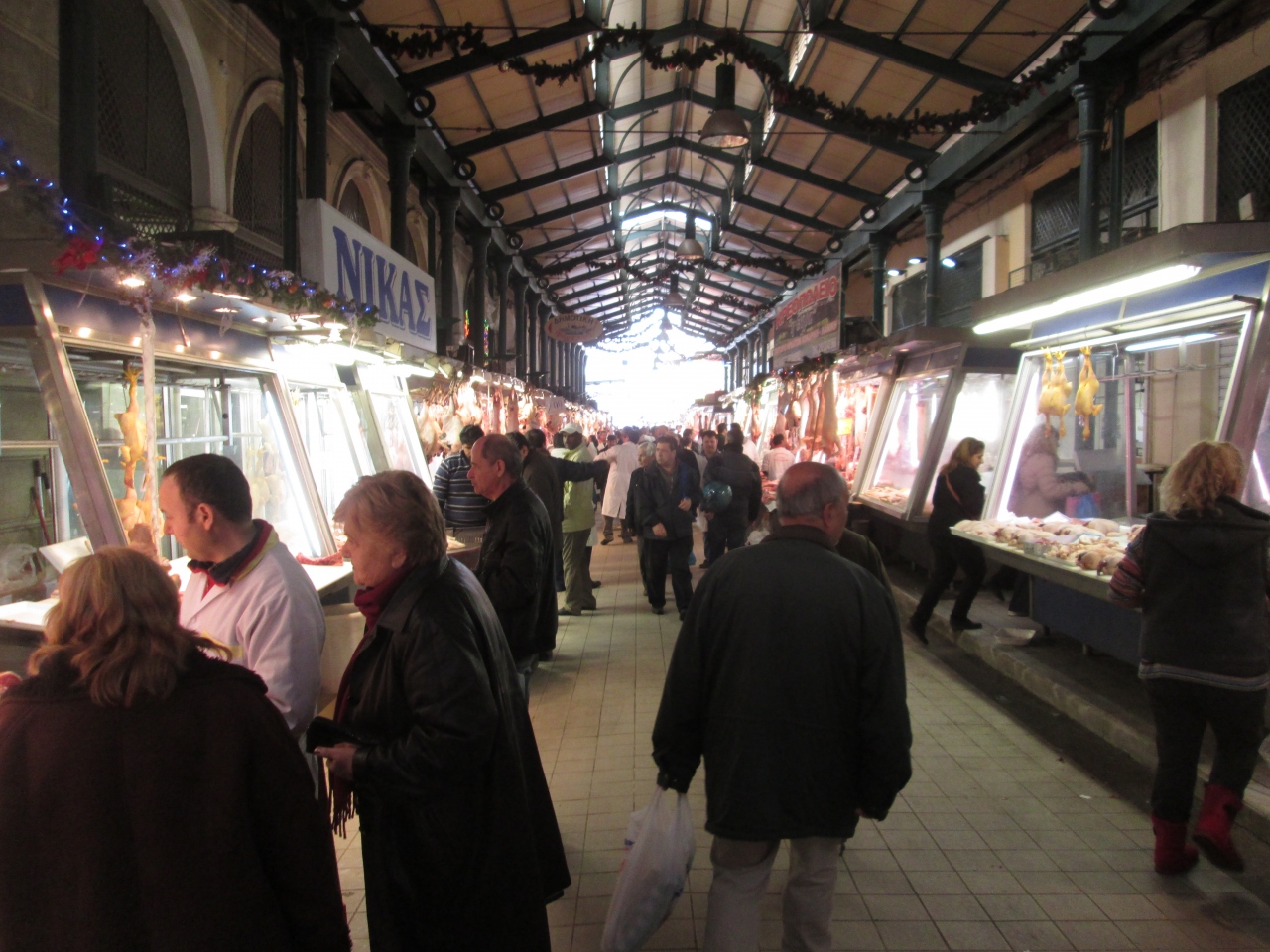 地下鉄モナスティラキ駅から北に延びているメイン通り、アティナス通りに面しています。市場内は非常に活気があり魚売り場は新鮮な魚が並んでおり、アテネの市場や物価事情が分かります。一般の人や観光客でも自由に見学することができました。