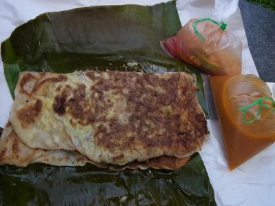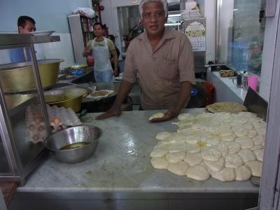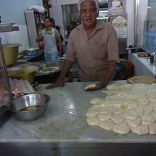 小麦粉をこねて何度も薄く伸ばした生地に、チキンやマトンの挽き肉や玉子、