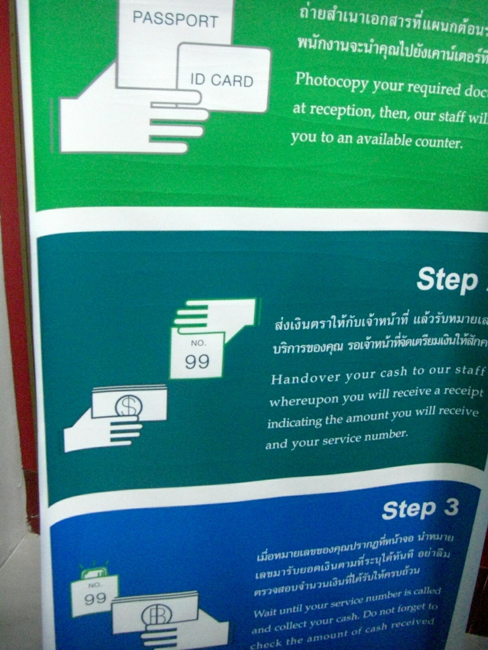 両替方法はだいたいどこも同じですが、最初に受付でパスポートのコピーを取られ、それとお金を持って窓口に行き、