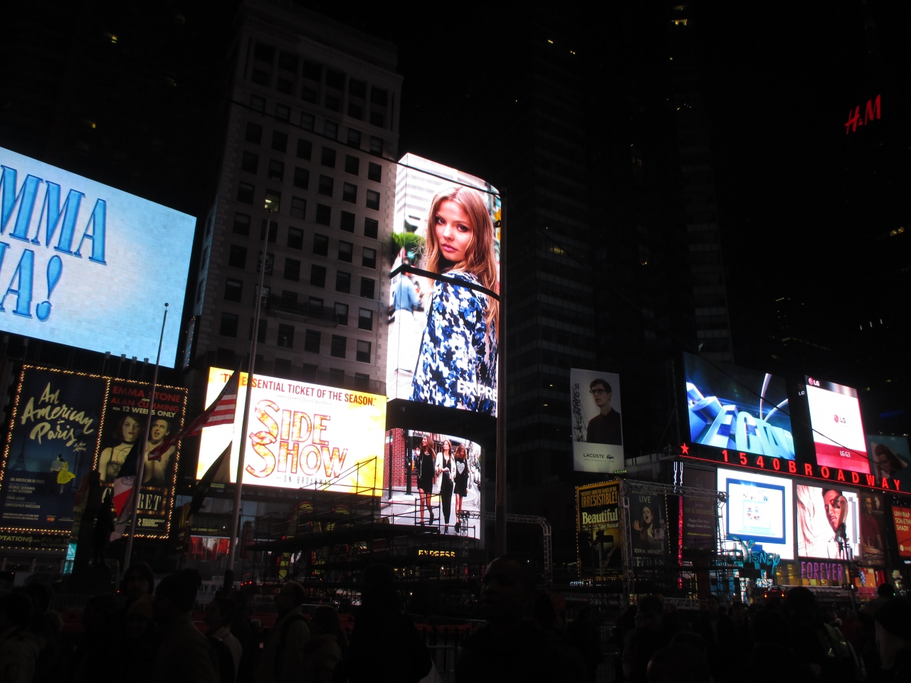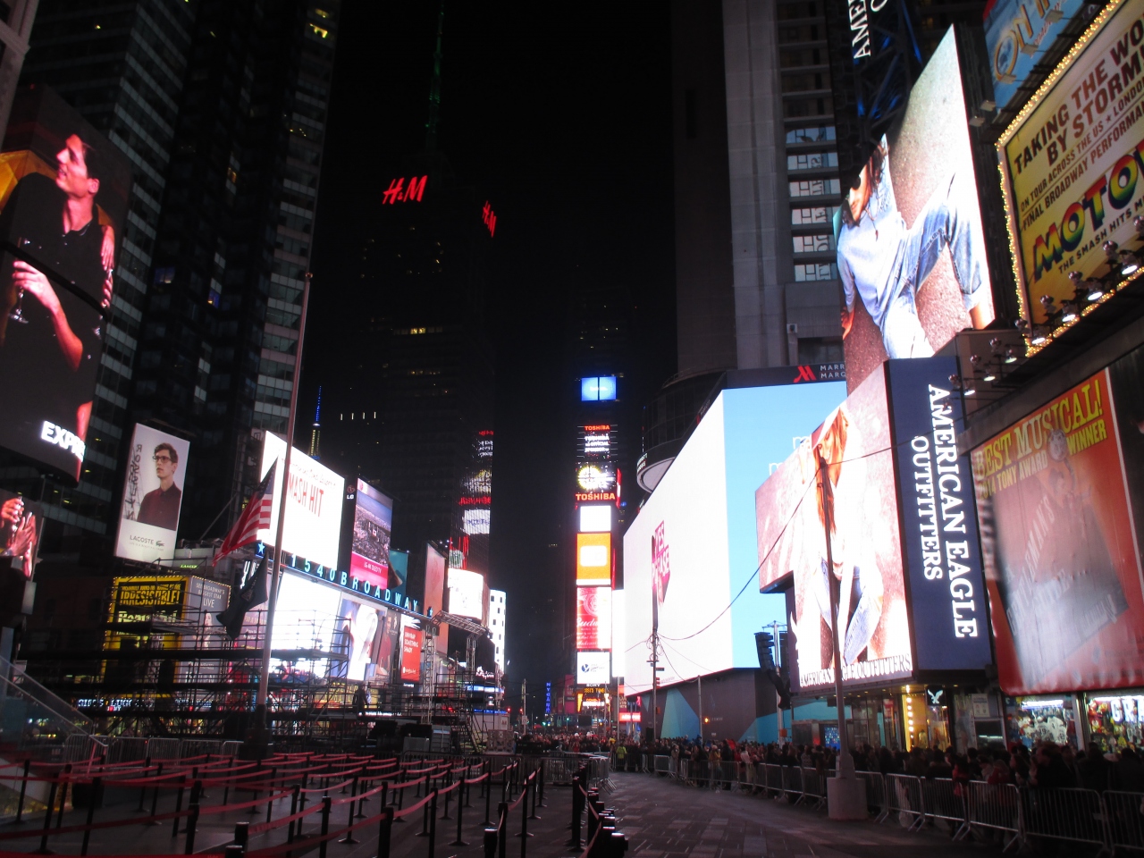 地下鉄Rの49Stで下車し、地上に上がり47th Street目指して歩いて行った。人が多くてなかなか前に進めない。人込みを避け、6thまたは8th Streetをまっすぐ進み次の目的地に進むのがいいかもしれない。昼は夜ほど混んでいないようで、いつでもネオンが明るいようだ。数日後ここでカウントダウンをやるなんて信じられなかった。周辺にはレストランがないが、M & M、ディズニーストア、H & Mなどある。