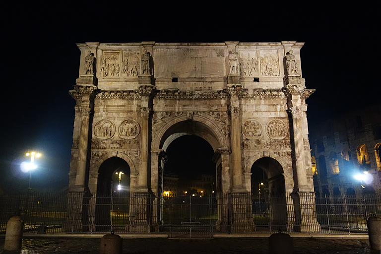 まだ夜の明けぬ朝の5時にローマを散歩。11年ぶりにコロッセオを訪れ、すぐ近くにこんなものがあることにびっくり。11年前は気づかず、写真にも残っていません。幸い、ライトアップされていたので、その姿を写真に収めました。こんなのは確かパリにもあったなと思いながら。