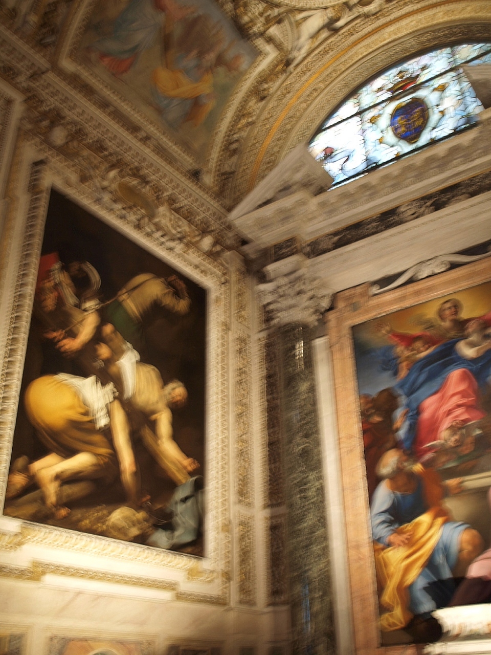 それぞれの時代に天才と呼ばれた巨匠たちの作品が普通にあるのだからローマはすごい。外観からはとても想像出来ない程、教会の中には贅沢な芸術作品が揃っています。