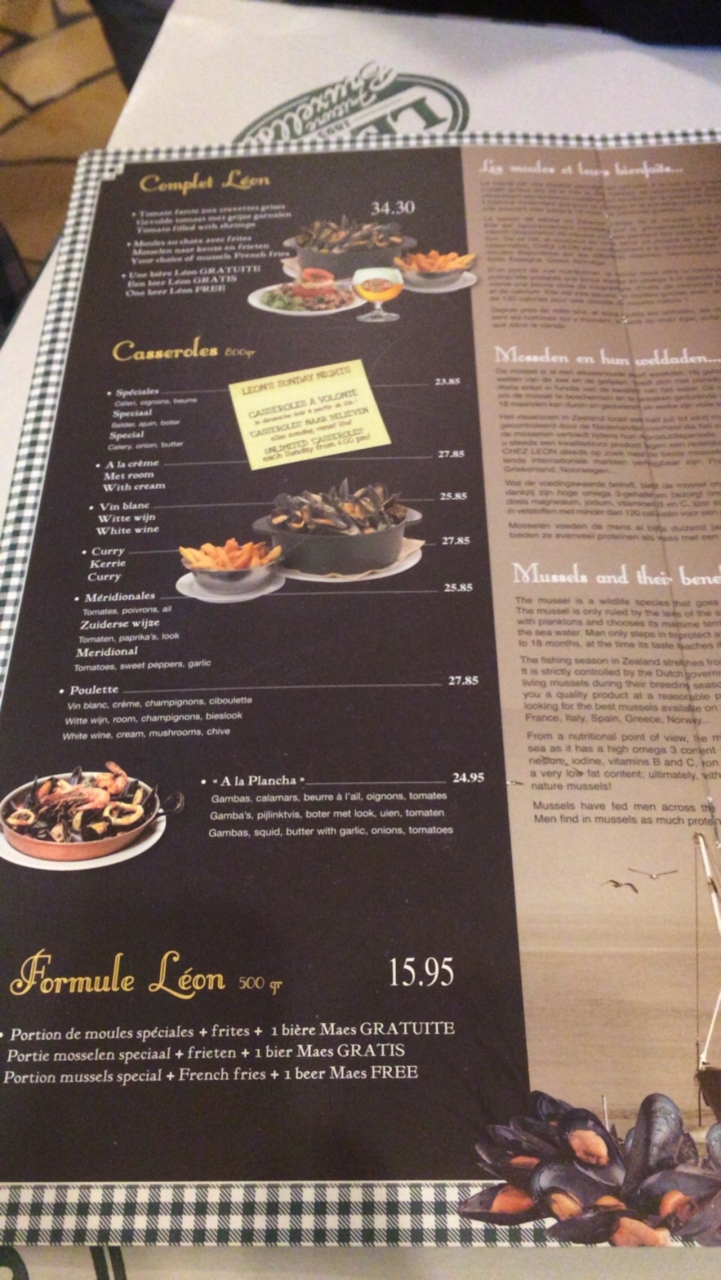 注文したのは「Formule Leon」でムール貝とポテト、ビールのセットです。