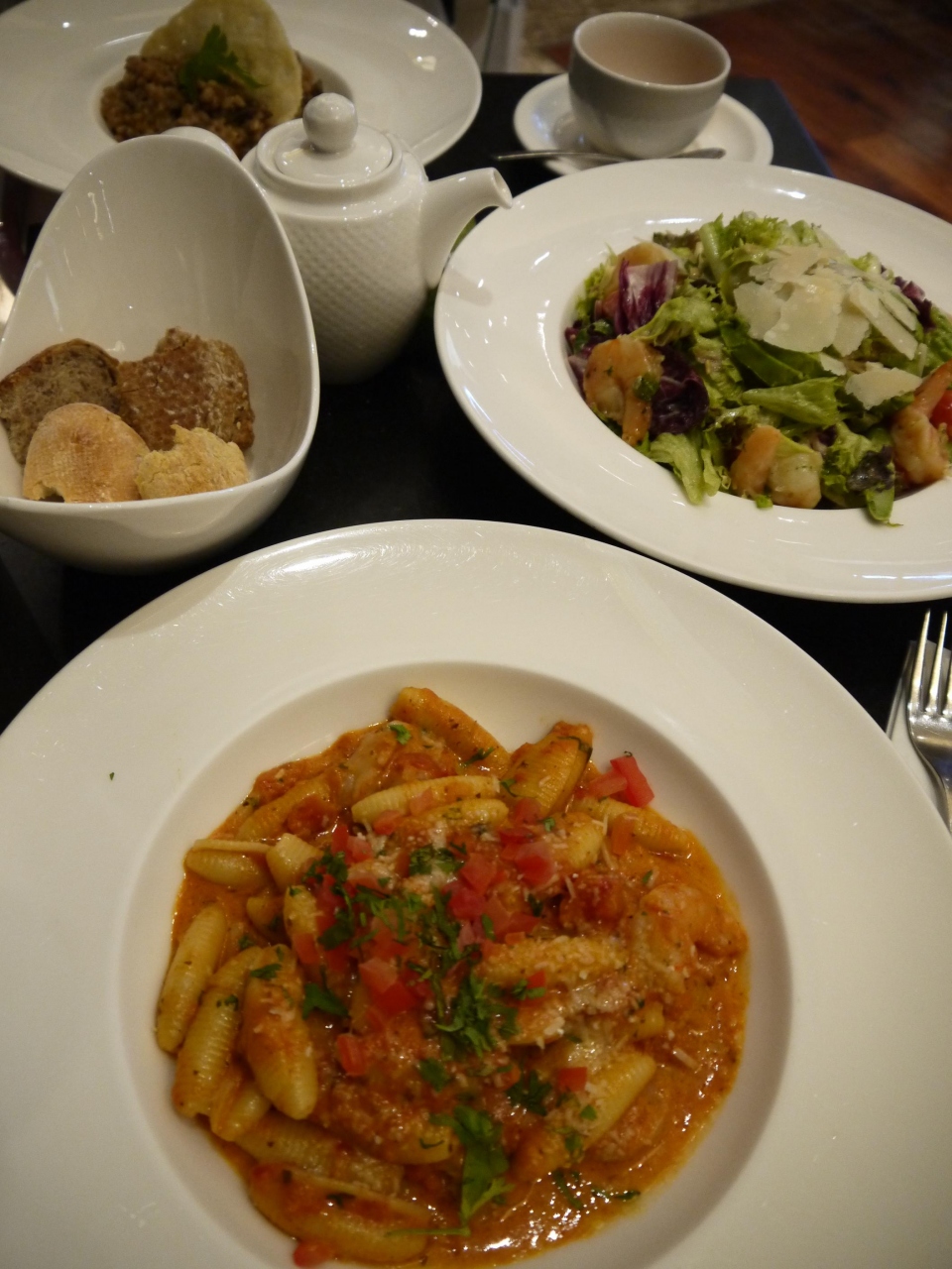 噴水近くの席はさわやかですが、少々風があたって寒かったです(笑)