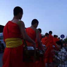 ★「シーサワンウォン通り」 メイン通りです。朝から晩まで観光客が絶えず、ここで早朝の托鉢に参加しました。夜は夜で、賑わい、観光に何度か行ったり来ました。本当のラオスらしさは?と尋ねられると、違う気がしないでもありませんが、ルアンパバーン観光には欠かせない通りです。
