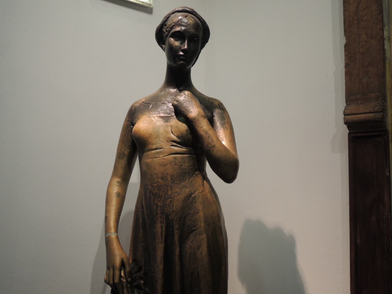 ヴェローナに来たのは、このジュリエットの家を見学するのが主な目的でした。映画「ジュリエットからの手紙」も見ていたので楽しみにしていて、実際に行ってみるとやはりちょっとした感慨がありました。入口の壁には観光客の落書きが沢山あり、ハート型のものもあって、ちょっとしたアート作品のようでした。中庭は観光客で溢れている一方、建物内は有料なので比較的空いていました。こちらはヴェローナカードを使って入場。バルコニーにいる様子を、下から撮影しました。ジュリエットの銅像は、屋内・屋外両方にあり、屋外の銅像には胸を触って撮影する人の列で混雑していました。時間帯によって混雑に差があり、団体客がいるとどうしても混んでしまいますが、一方ですぐにいなくなりますので、団体客がいない時に再度来ると良いと思います。