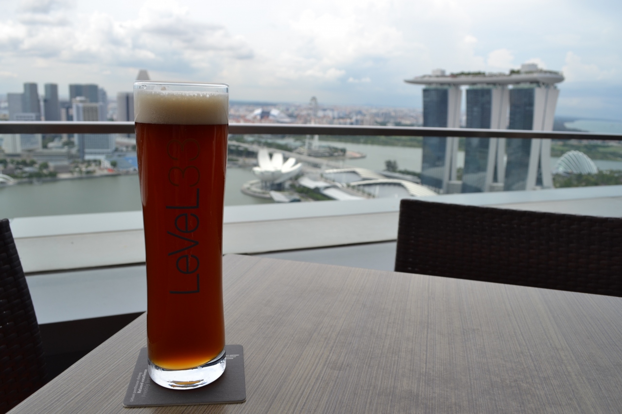 マリーナベイを一望できるバーで、オリジナルビールを飲むことができます。夜景が有名ですが、昼間もイイですよ~。少なくとも夜より空いていますので、マリーナベイを眺めながらビールを楽しめます。