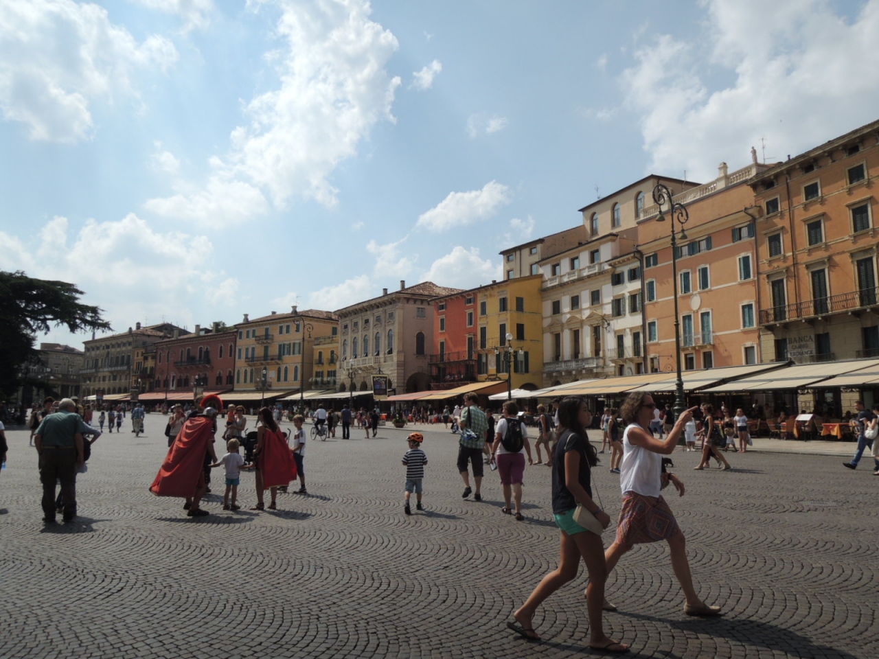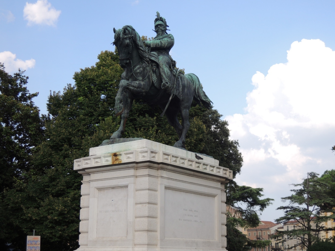 ヴェローナの駅からバスで移動すると辿り着くのがこの広場です。アレーナがあり、ヴェローナカードを購入できる観光案内所も近くにあります。広場に沿ってカフェやレストランのテラス席が並んでいて、くつろげる雰囲気です。その他、観光用のトロッコや統一イタリアの象徴であるヴィットーリオ・エマヌエーレ2世の銅像があったりします。