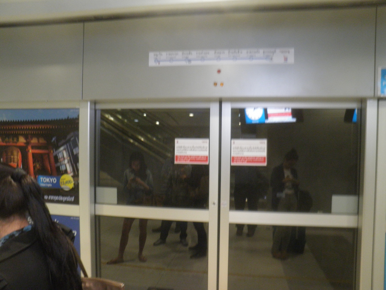 スワンナープム国際空港に到着したとき、バンコク市内のマッカサン駅までシティラインという高速鉄道を利用しました。 空港ターミナルまでエスカレータで降りたのですが、荷物運搬用の傾斜の緩いエスカレータに乗ってしまって時間がかかりました。エレベータにしたらよかった。 車内は冷房がきいて寒いくらいでした。