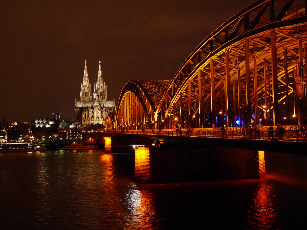 とにかく存在感が凄いです。駅からすぐ見えるので、どこかへ行く途中に下車して少しだけ観光、というのも可能です。ですが夜ライトアップされた大聖堂はとにかく綺麗なのでお時間があればケルンに宿泊しての観光をオススメします。特に対岸から見る大聖堂と橋の景色はあたたかいオレンジの光に包まれていて素敵です。