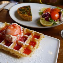 座ってゆっくりワッフルを食べたかったので、ガイドブックに載っているこちらへ。ガイドブックに載っているからでしょうが、店内は日本の方でいっぱいです。一回はテイクアウトになっていて階段を上がって二階がカフェになっています。説明をよく読まずにフレッシュレモンジュースをオーダーしたら、本当にレモン生絞りでビックリしました。ワッフルは可もなく不可もなく、という感じかな。店員さんがひとりで忙しそうにまわしているので、あまりゆっくりはできませんでした。