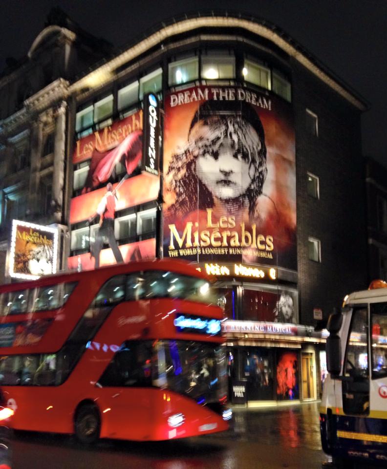 3か月前にチケットを予約し、クリスマスの翌日夜に鑑賞。舞台から4列目のほぼ中央の席、目の前約5メートルの距離でエポニーヌからフォンティーヌ、ジャンバルジャンにコゼットの生の熱唱に大感動。