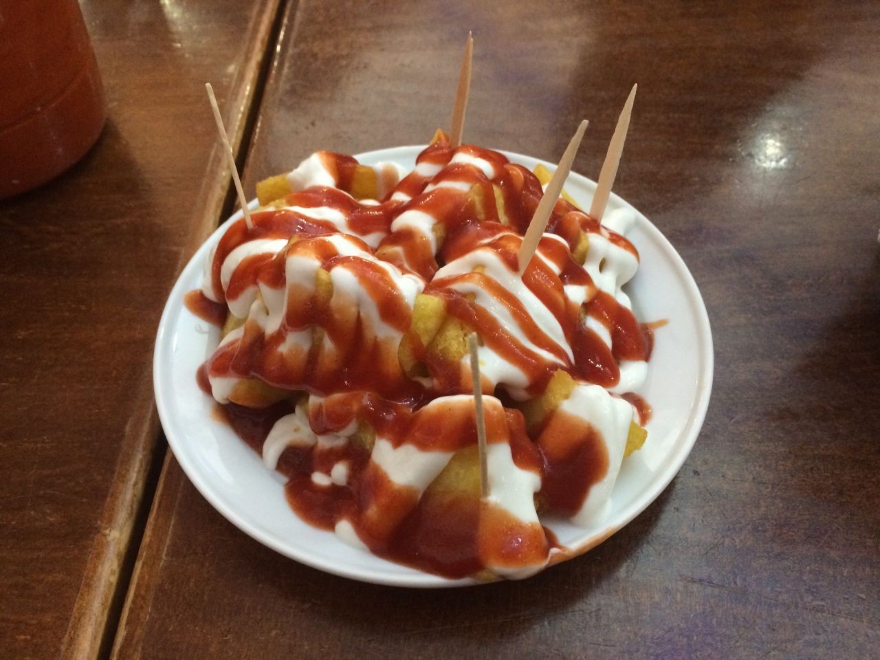 フエンヒローラの繁華街にあるタパスです。ガンバピルピルやパタタスブラバス、クロケッタなどを食べました。ガンバピルピルは海老自体ももちろん美味しいのですが、ソースに海老の良い味が出ていて、みんなでパンに付けて食べてしまいました。