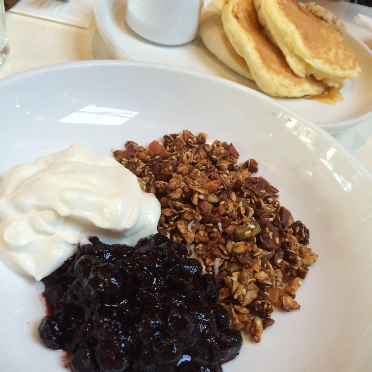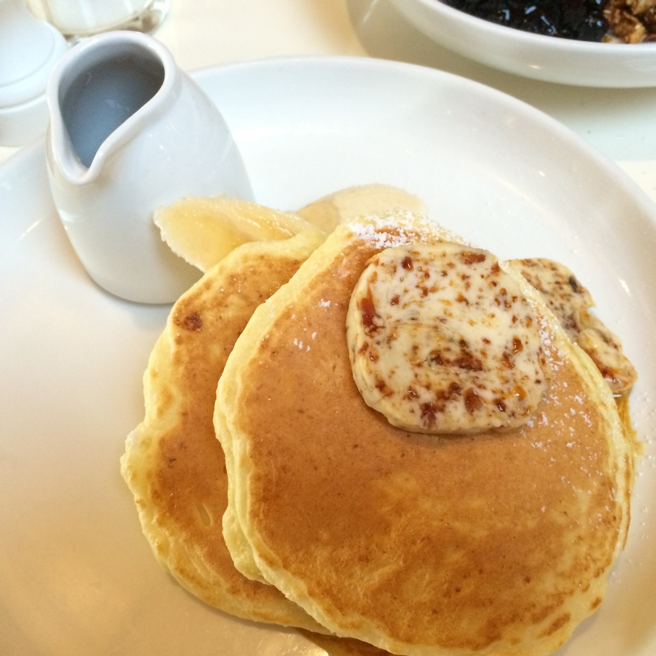 パンケーキとギリシャヨーグルトを頼んで2人でシェアしました。