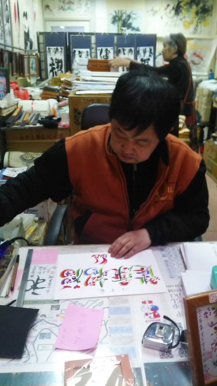皆さんがよく御存じの阿妹茶楼の横の階段を上っていくと左右に道にぶつかります。そこを左に曲がり,出口のセブンイレブンまでの通りが,基山街と呼ばれる商店が密集した老街の一画にになります。お土産や食べ物屋など特徴あるお店が並んでいます。この日は,日本の正月である元旦であったため外国及び地元の観光客でごった返してまともに歩けない状態でした。まともに行くと10分もかからない基山街を30分以上もかかって抜けた時は,疲労困憊でした。そんな中,前回お店が閉まっていて購入できなかった掌怪画廊の花鳥画をお土産としてゲットできたのは元旦からとても縁起がいいと思いました。