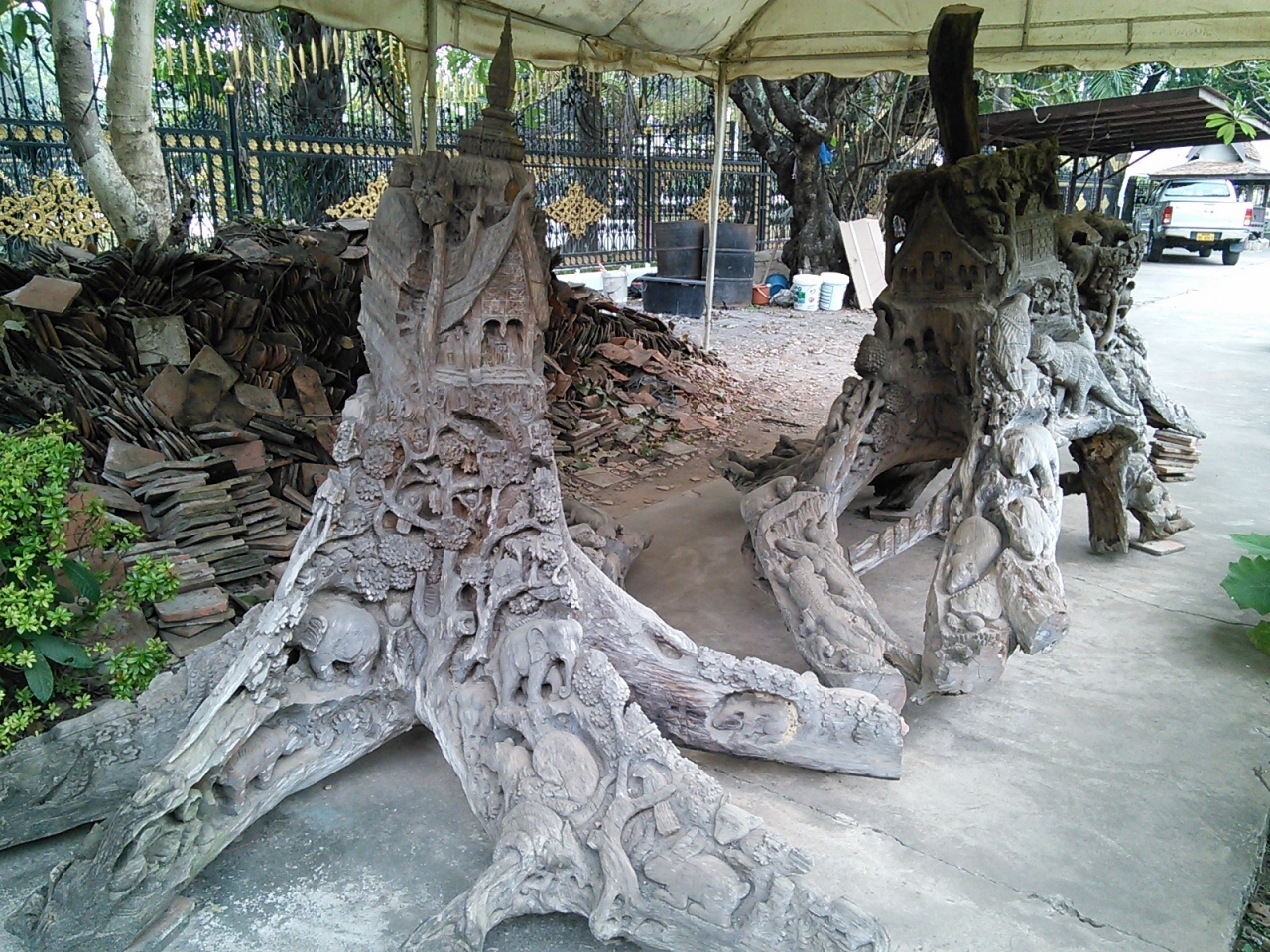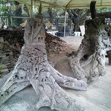 立派な寺院ですが“活きた”寺院というよりは遺跡のような雰囲気がありました。それもそのはず王の保護寺院であるため僧侶がおらず寺院としては使われていません。本堂内は博物館になっています。本堂に向かって右側の庭園の一画には動物などが彫られた大きな木の根が無造作に置かれています。観光客のほとんどは気づきませんがこちらもなかなかのものなのでぜひ立ち寄ってみて下さい。