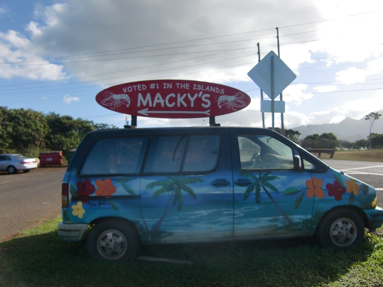ハレイワ入口のロータリーにあるマッキーズ。レンタカーで行きましたが、ワゴンが目印となり、すぐにわかりました。敷地は広く駐車場も心配ありません。