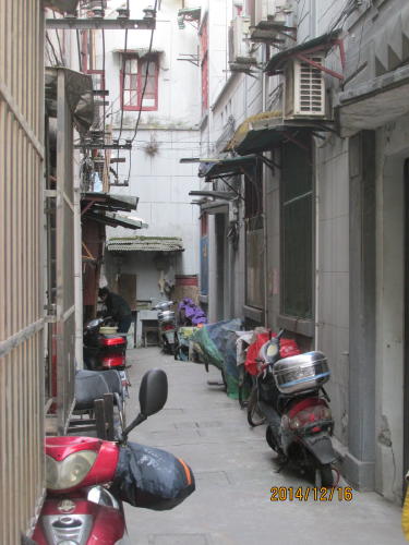初期の仏国租界にある吉如里は延安東路と人民路を南北に結ぶ短い道の紫金路と江西南路と東西を結ぶ金陵東路(騎楼が続く)に囲まれた地域です。昔ながらの石庫門住宅(西洋長屋住宅)で多くの住民が昔ながらの生活をしています。各部屋にトイレが無いので夜は馬桶にして朝捨てに来る。浴室も無いので普段は身体を拭くだけでたまに有料シャワーに来る。狭い一部屋に一世帯が入る。これが上海の現状です。