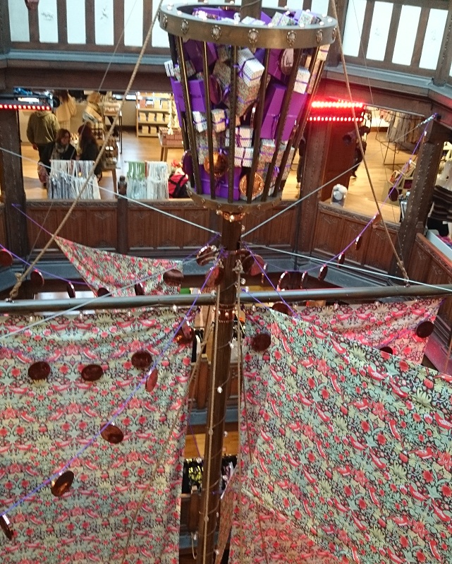 リバティプリントは日本でも有名ですが、ここに行けばいろいろな柄の生地を買えます。ちょうどクリスマス後のセールだったので、生地類はどれも安くなっていました(それでも高いですけどね)。歴史のある建物なので、フロアーの移動は入り組んでいましたが、それはそれでおもしろかったです。