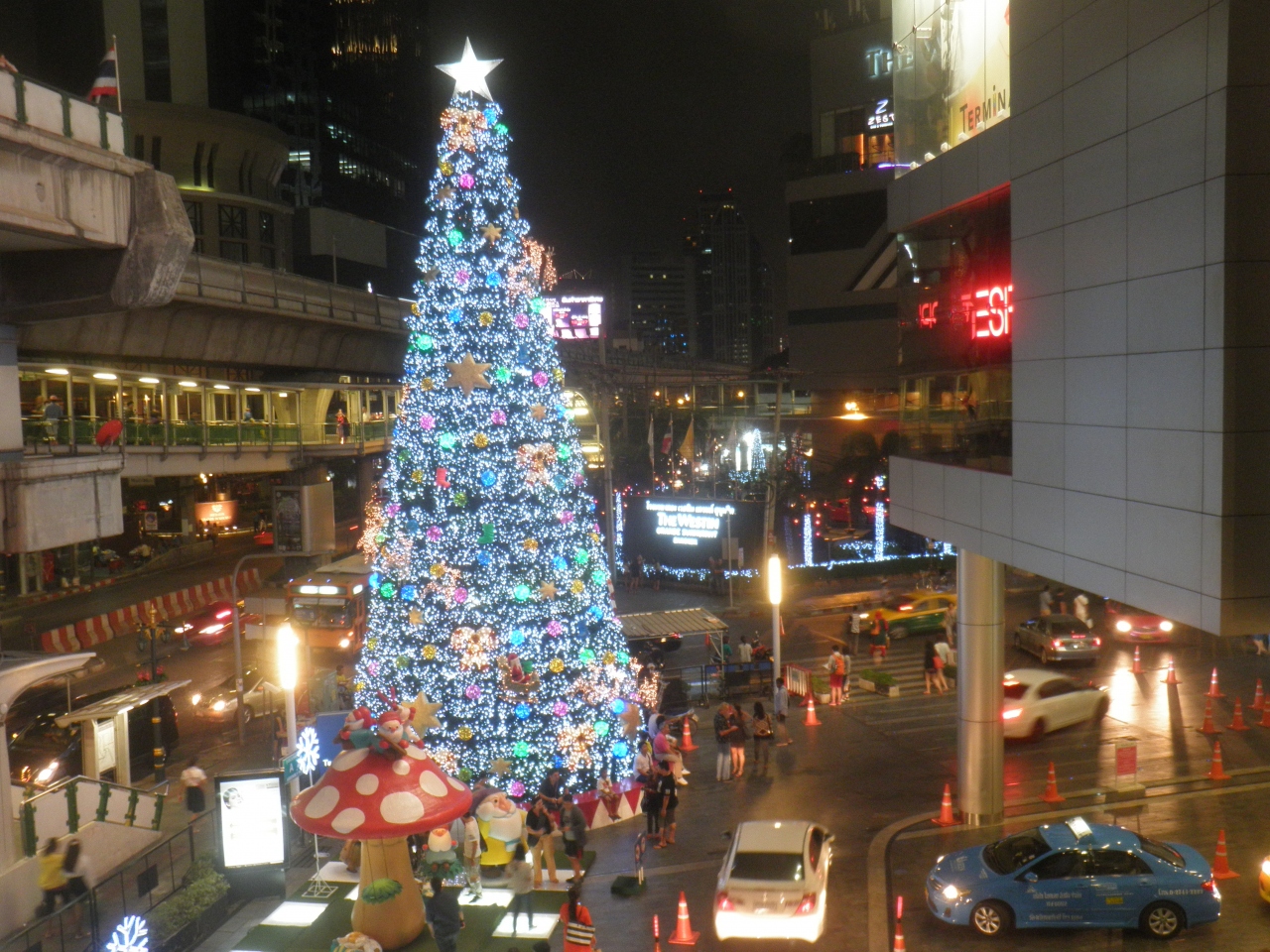 12月にバンコクを訪れると、あちらこちらでクリスマスと新年のデコレーションをみかけます。 BTSアソーク駅や地下鉄駅のあるターミナル21には、大きなクリスマスツリーのイルミネーションが飾られていました。 入り口から入ると、セキュリティゲートがあり制服を着たガードマンが敬礼をしてくれました。
