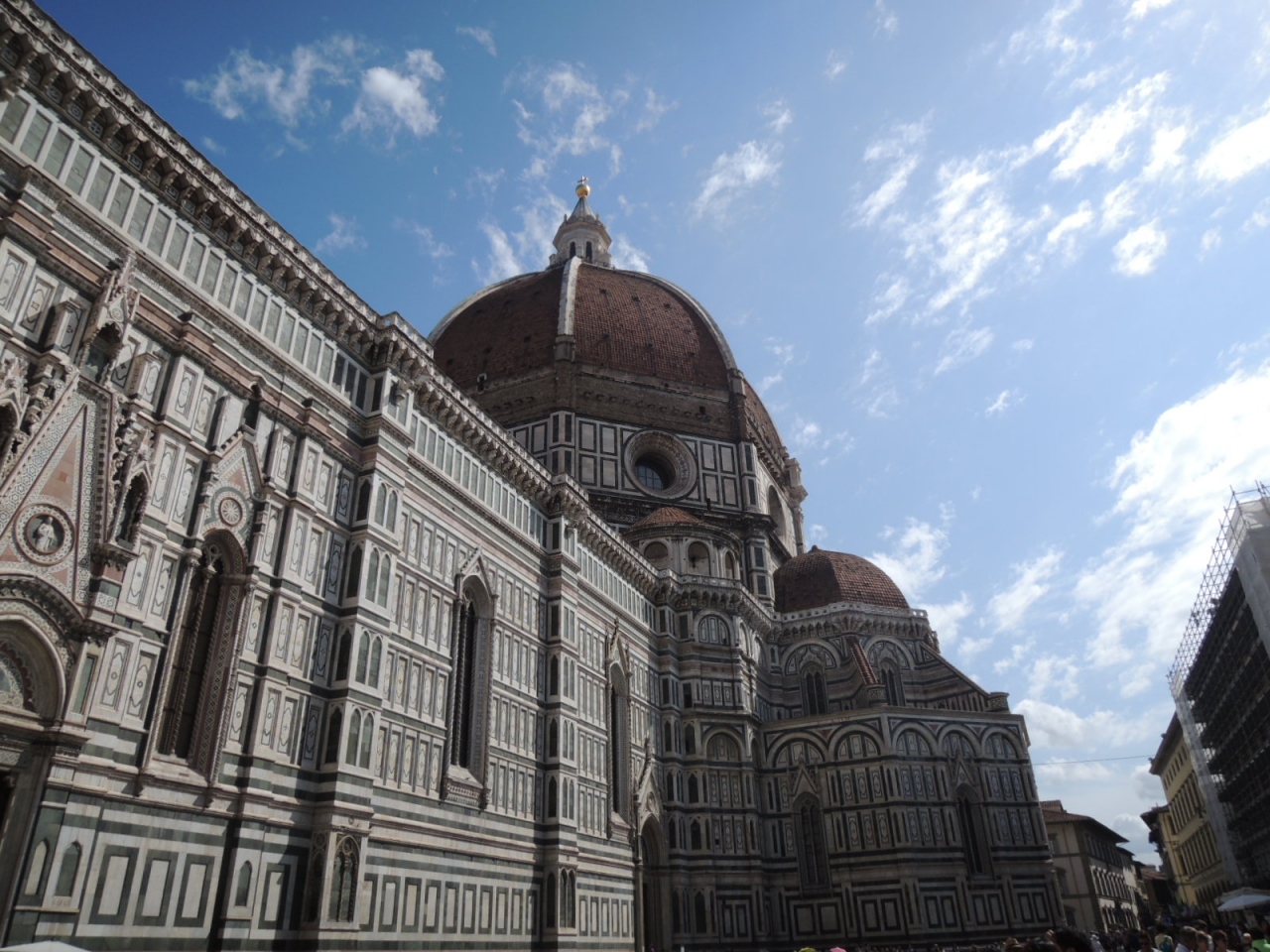 サン・ジョヴァンニ洗礼堂・ドゥオモ・ジョットの鐘楼があるドゥオモ広場は、フィレンツェ滞在中は毎日のように通りました。観光客で溢れていて、路上の物売りも沢山いますが、押し売りするような怖い感じではなく、警察の人も巡回していますので安心でした。実際に物売りの人からスライムのおもちゃを買ったのですが、値切ったところ当初の1/3ぐらいの値段で購入できました。