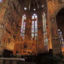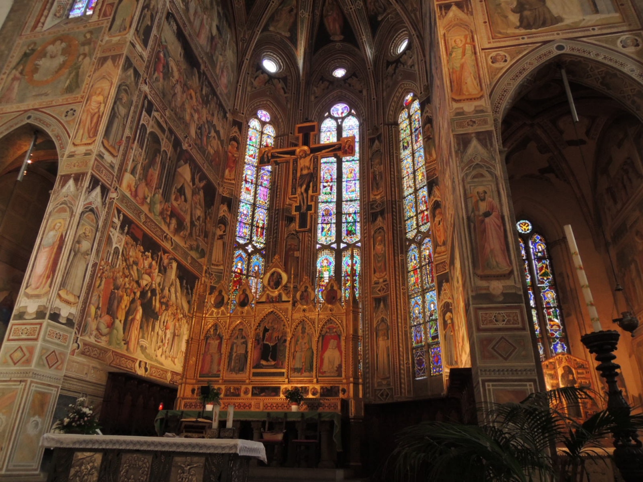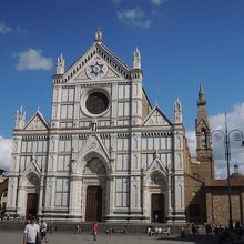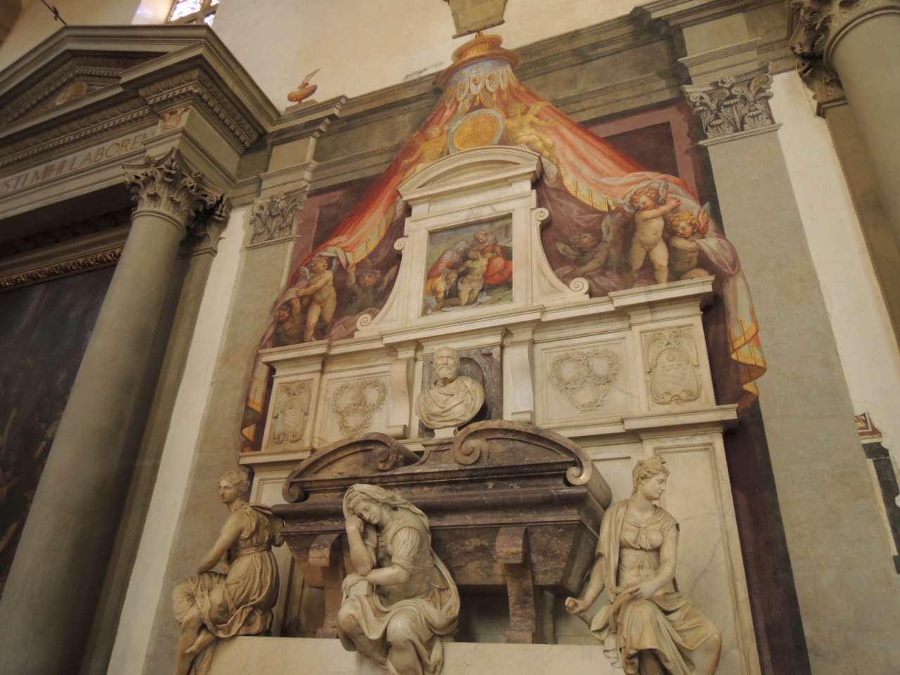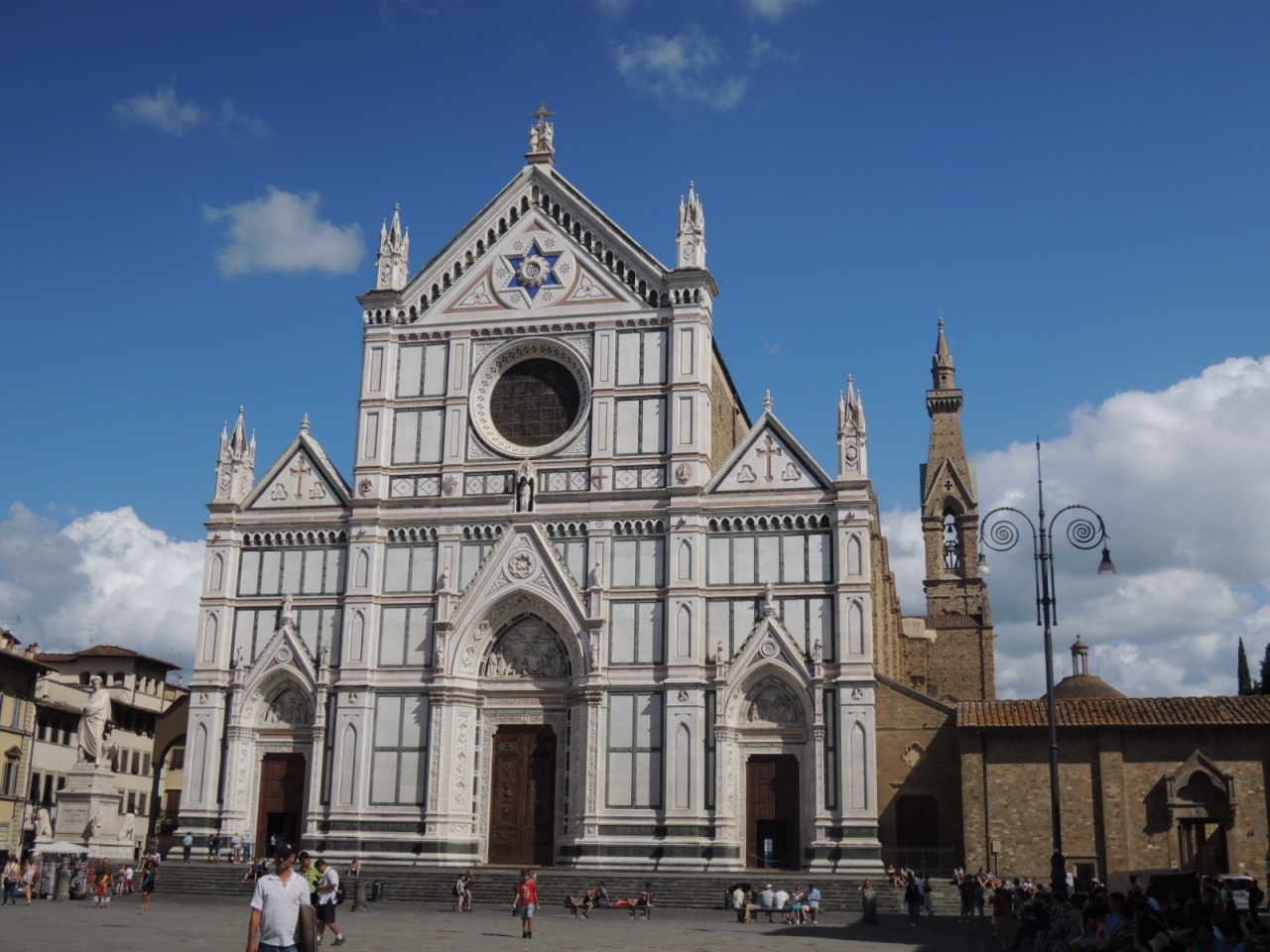 ファサードがなんとなく、サンタ・マリア・ノッヴェラ教会に似ている教会です。入場の列はそれほどでもありませんでしたが、この教会もフィレンツェカードで行列に並ばずに入場できました。ミケランジェロ、ダンテ、ガリレオ等著名人の墓碑・記念碑が多数あり、探しては確認するといった形で見学していました。内装は、他のサン・ロレンツォ教会やヴェッキオ宮殿などに比べると、さすがにやや落ち着いた雰囲気ですが、荘厳な雰囲気がありました。