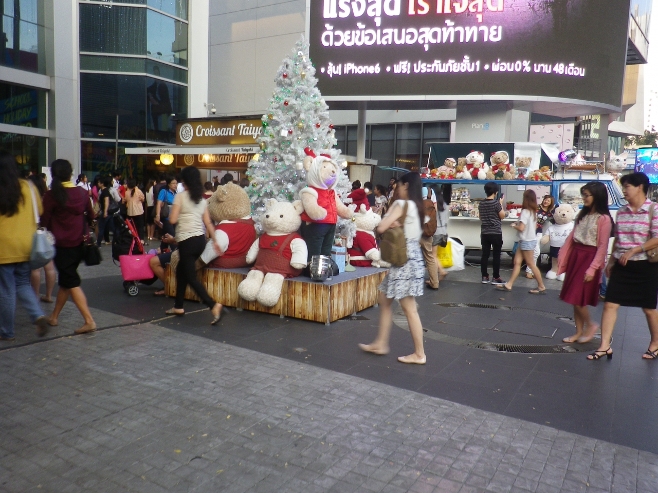 サイアム駅を降りてすぐにサイアムスクエア、サイアムセンターなどあります。クリスマスの時期に訪れたためイルミネーションがきれいでした。南国の木に装飾をしているさまはなんだか面白かったです。おしゃれなタイの若者の日常生活を垣間見ることができます。