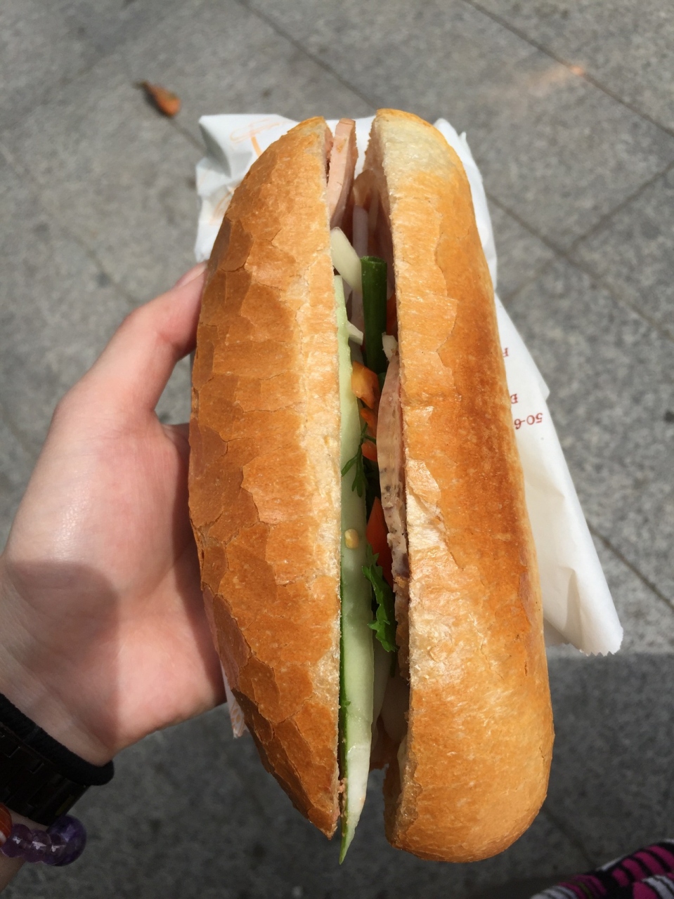 人気店との事で、行ってみました。が、お店の手前にあった、ニューランのテイクアウト専門の方を先に見つけてしまい、そこで買いました。買って歩いて行くと、店内で食べれるローカルなニューランを発見!でも買ってしまっていたので、外でいただきました。感動するほど、フランスパンが美味しい!それと同時に涙が出るほど辛い!唐辛子の種がとてつもなく辛いのが原因でした。抜いてもらえるので、辛いのが苦手な方はそちらをオススメします。