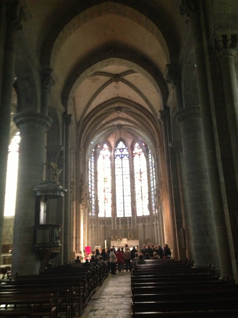 カルカソンヌの城壁、つまりシテ内にある教会です。シテ内の観光においては、外すことのできないスポットです。内部は、とても荘厳な雰囲気であり、そのステンドグラスの美しさと、荘厳な雰囲気に、心が洗われます。