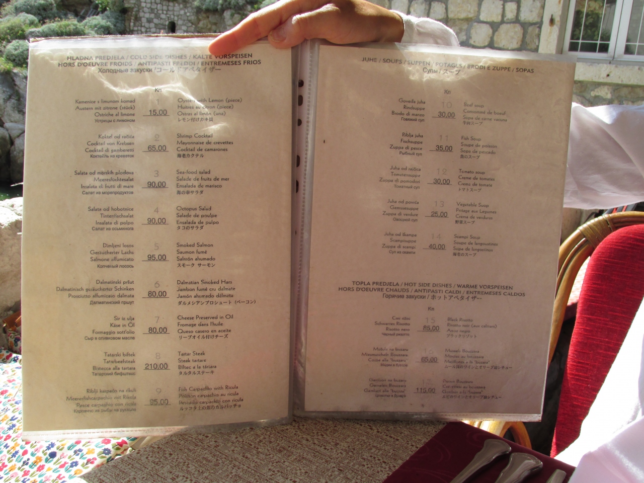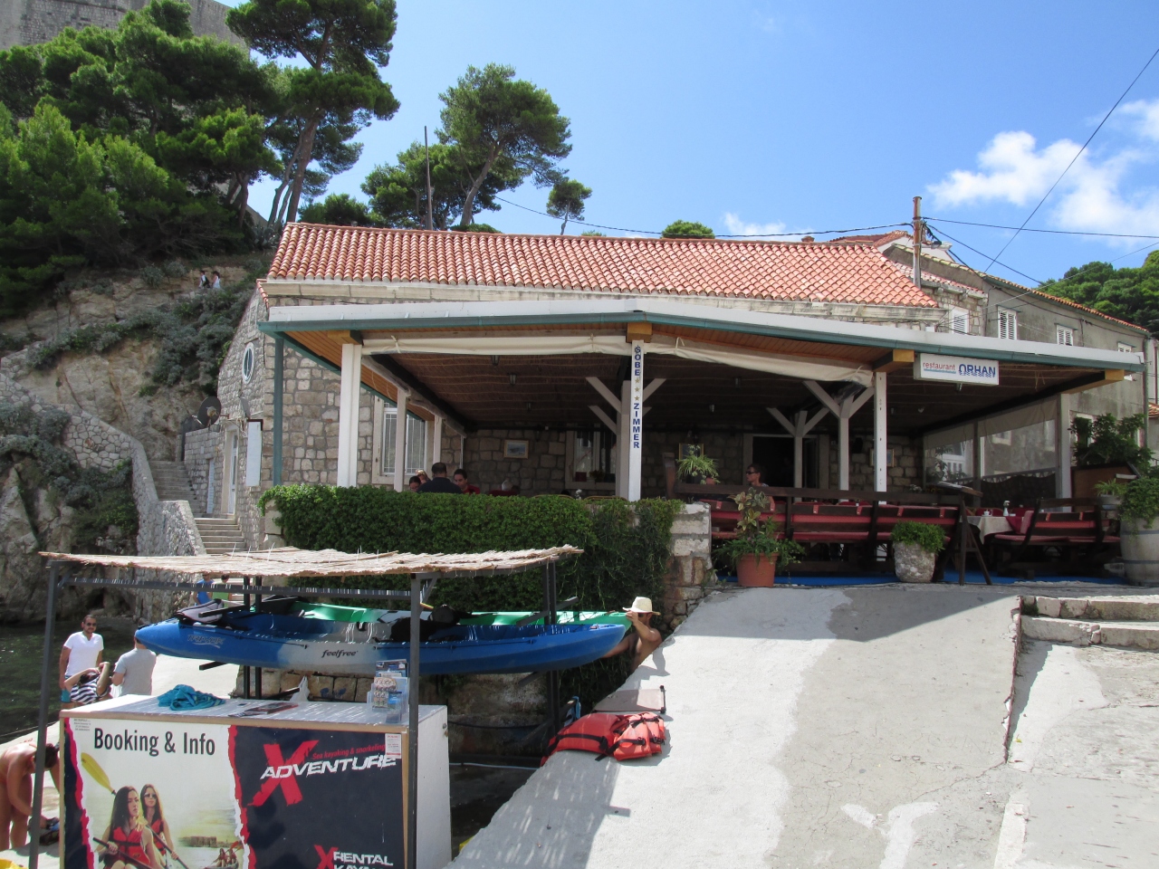 城壁の外側にあるので人混みもなく静かでした。のんびりと海で泳いでいる人や舟を操る人を見ながら食事しました。ドブロヴニクカードで10%offでしたが、レシートはそのままの値段だったので聞くと、10%offした金額を置いていってくれればいいよとのことでした。