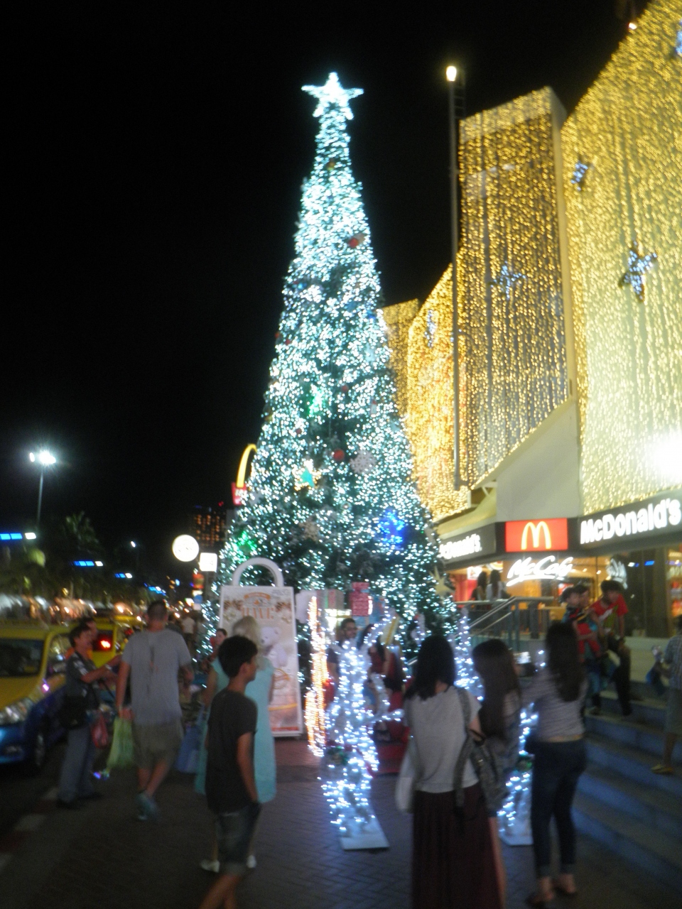 12月下旬にパタヤのビーチロードとセカンドロードにある、ロイヤル・ガーデンプラザに行きました。 1階のビーチ側にはマクドナルドやケンタッキーフライドチキンなどのおなじみのファーストフード店があって、休憩するのにいいです。 ビーチ側に大きなクリスマスツリーが飾られてきれいでした。